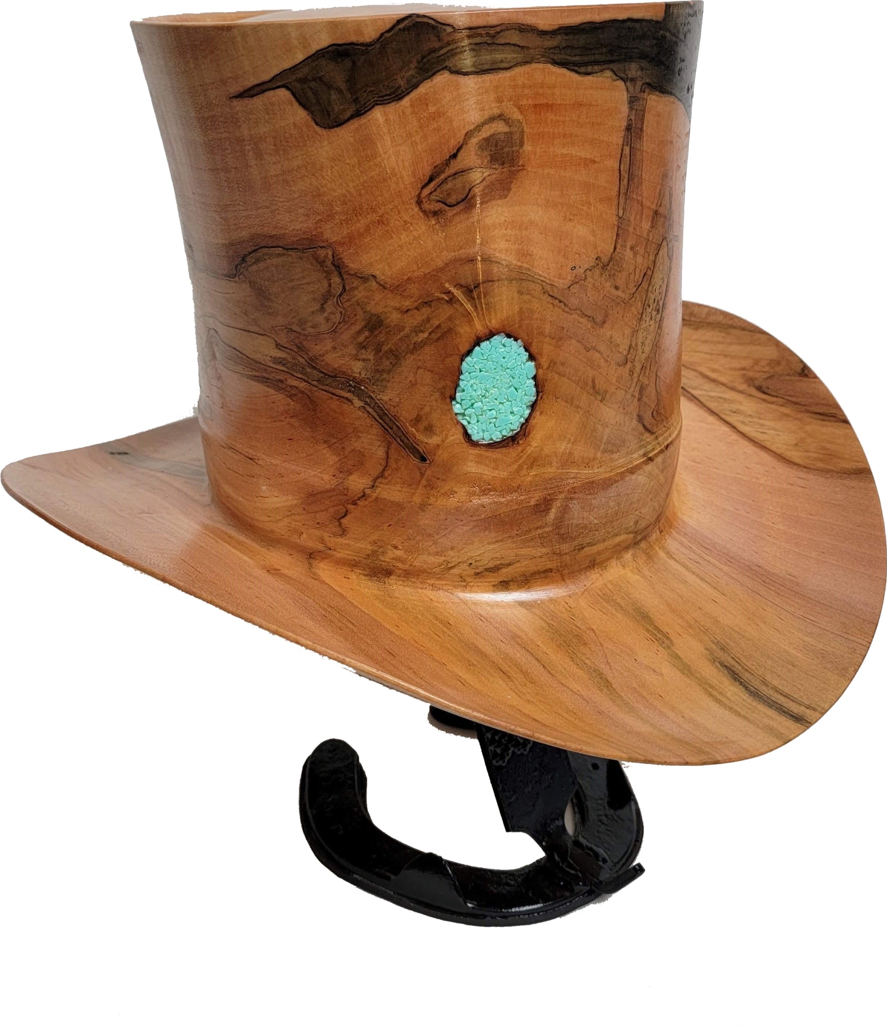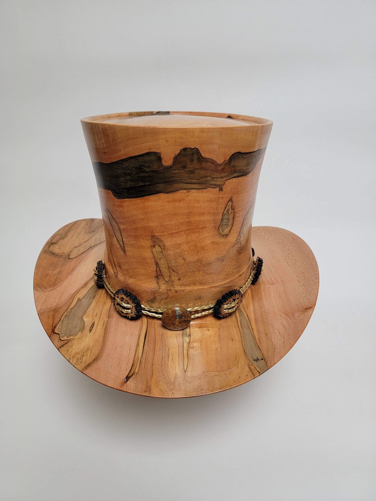 This Ambrosia Maple Cowboy Hat is a rare, luxurious fashion statement. Designed by renowned U.S. artist Brian Butler, it is skillfully crafted with responsibly sourced wood from a lightning-struck downed tree. The beautiful Ambrosia Maple wood is turned on a lathe and then gently formed into a stylish, yet lightweight, cowboy hat, making it comfortable to wear. Each hat is signed and numbered, making it the perfect gift for the discerning connoisseur. Make a statement with this sophisticated and exquisite Ambrosia Maple Cowboy Hat - a wonderful surprise and limited edition.