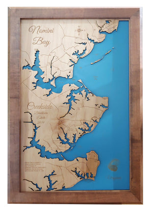 Nomini Bay, Virginia - laser cut wood map