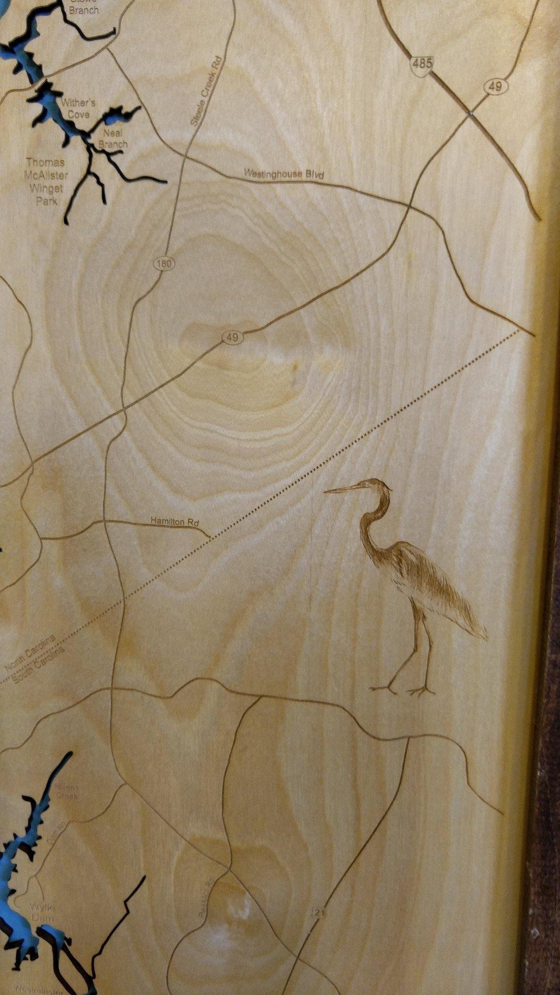 Our maps are made from beautiful birch plywood. Natural variances in the wood grain ensure a unique work of art. Once the map is cut, it is hand sanded multiple times, mounted on a blue board to highlight the water, and given a clear coat for a lustrous wood shine. Proudly made in the USA by American workers in an American owned business.