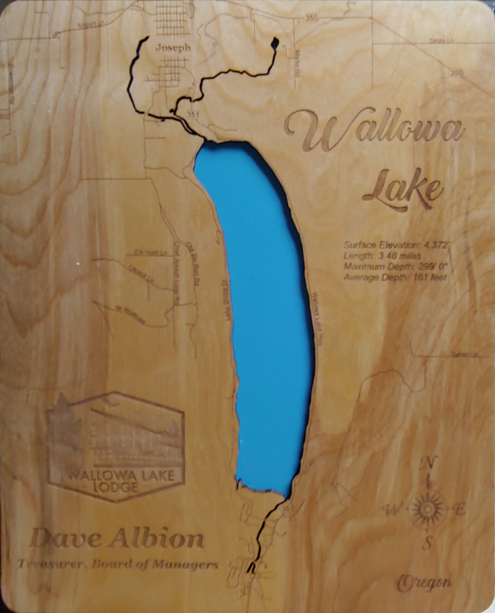 This is a beautiful, detailed, laser engraved and precision cut map, including lake information such as surface area, elevation and maximum depth.