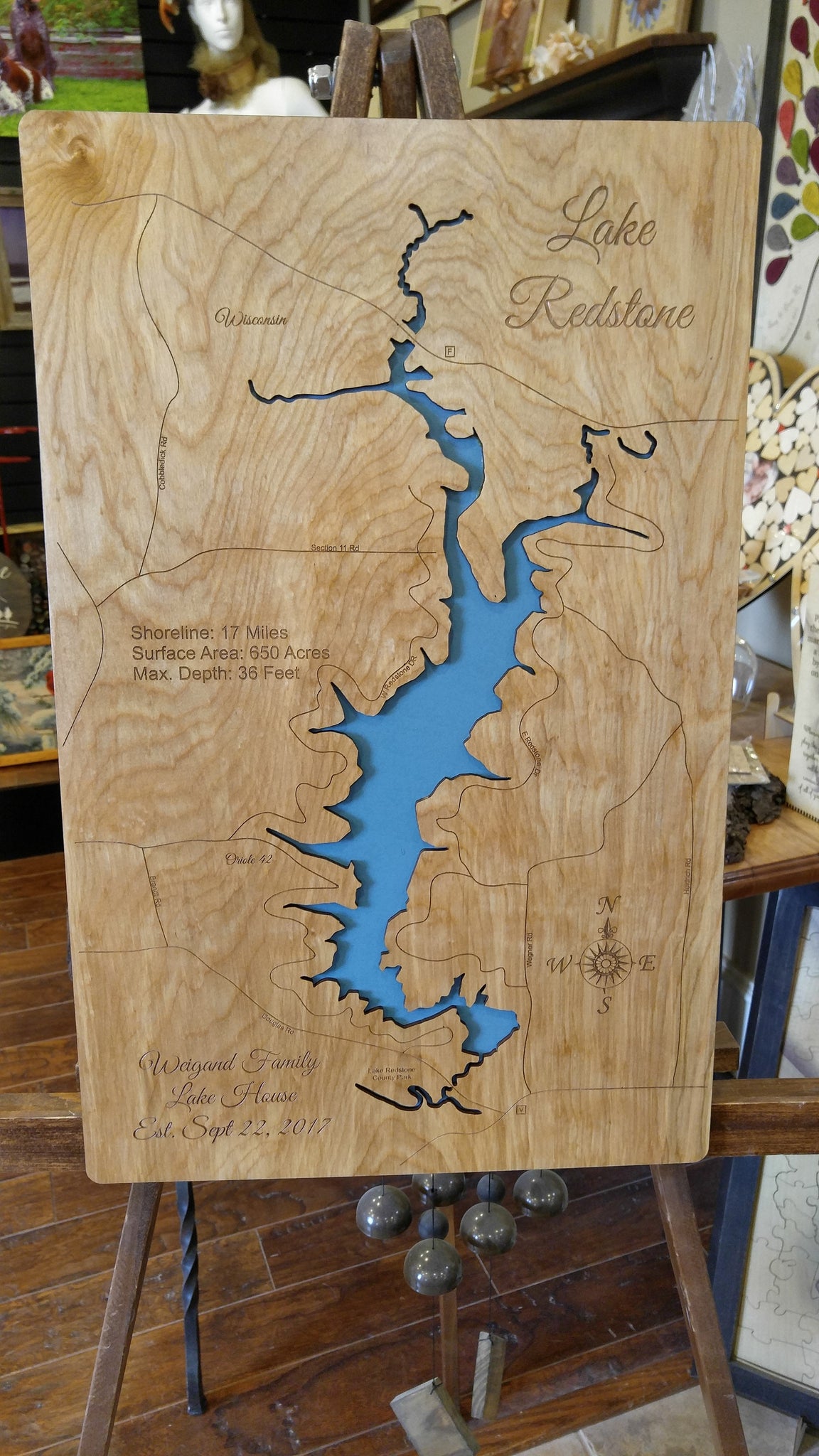 Lake Redstone, Wisconsin - Laser Cut Wood Map