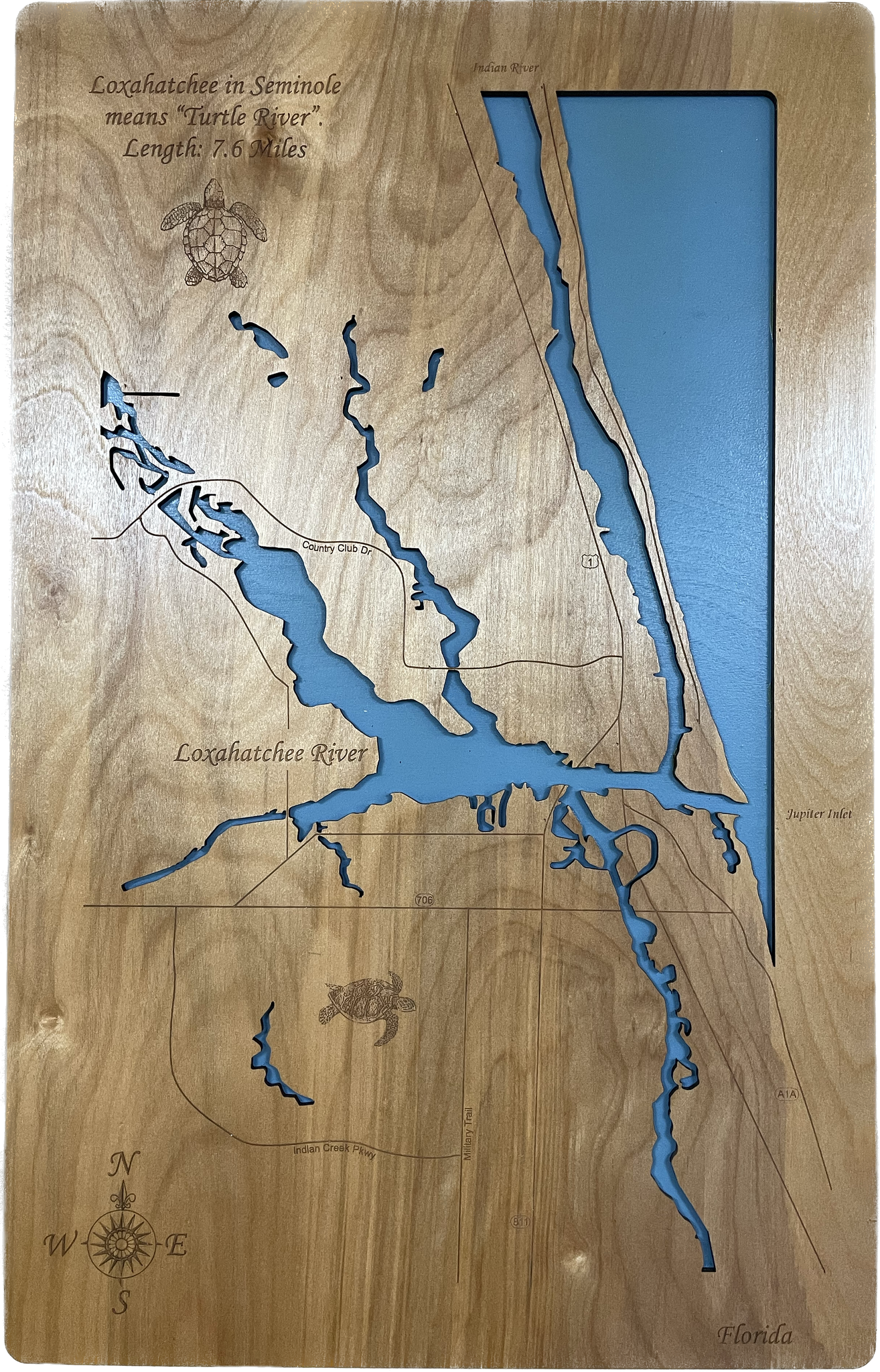 Loxahatchee River - Laser Engraved Wood Map Overflow Sale Special