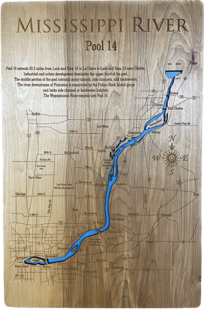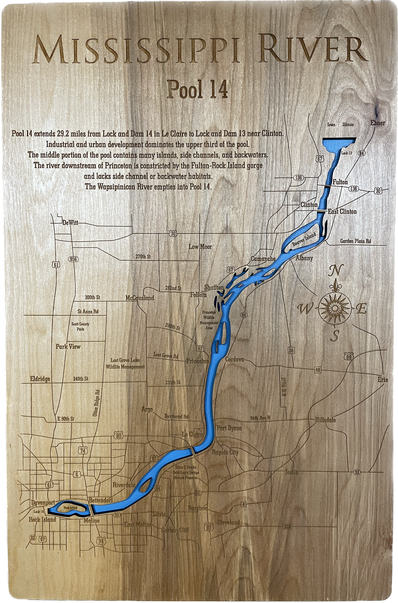Mississippi River Pool 14 - Laser Engraved Wood Map Overflow Sale Special